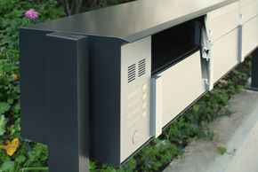 Einzelkasten, sendzimirverzinktes Stahlblech, pulverbeschichtet RAL 7016, Front aus Chromstahl, allwettertauglich, Post-Norm.